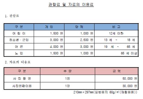 2) 동절기 오전 10시~오후 5시 (매주 월요일 휴관)