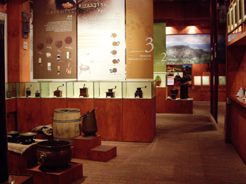 [제1관 - 커피의 역사] 서양의 커피역사와 우리나라의 커피역사를 한눈에 볼 수 있고 각 산지별 커피 특징과 재배조건 등을 알아 볼 수 있다. 또한 약 300여년 전 사막에서 사용하던 커피 추출기 등이 전시되어 있다.