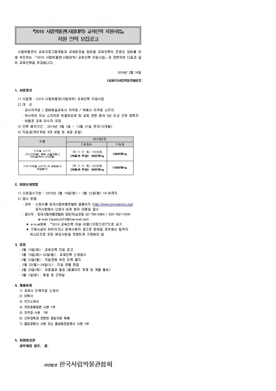 [2016 사립박물관(사립대학) 교육인력 지원사업] 인력 모집 공고
