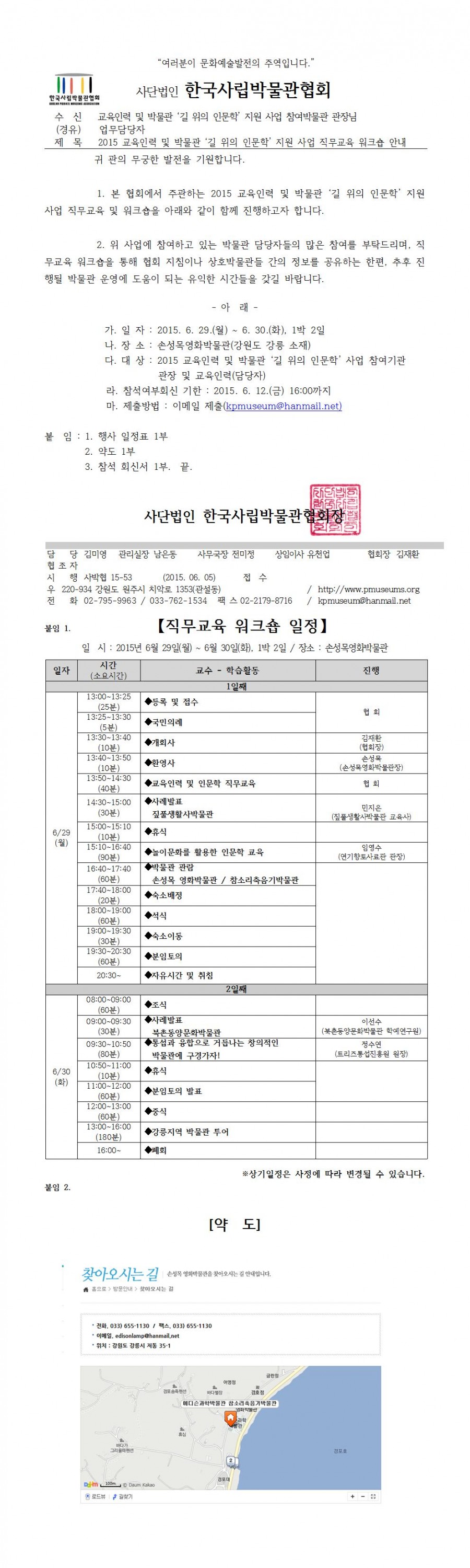 2015 교육인력 및 박물관 '길 위의 인문학' 지원사업 직무교육 워크숍 안내