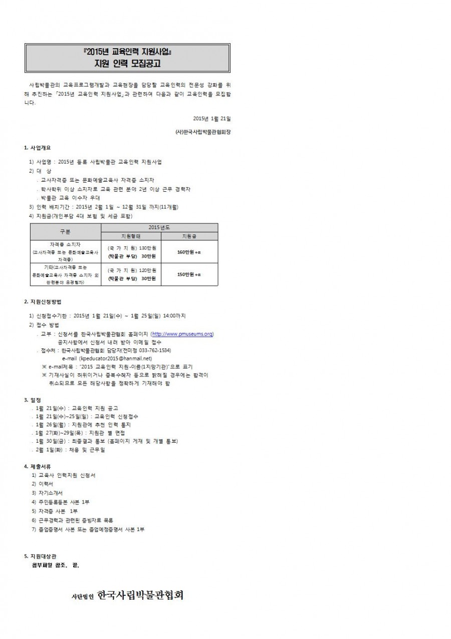 '2015년 교육인력 지원사업' 지원인력 모집공고