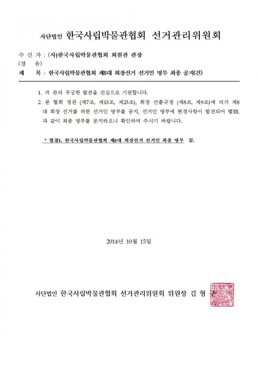 제8대 회장선거 선거인 명부 최종 공지