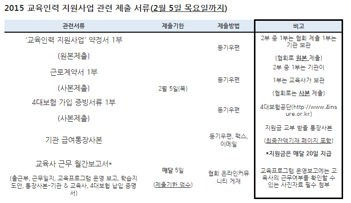 2015년 교육인력 지원사업 관련 서류제출 안내