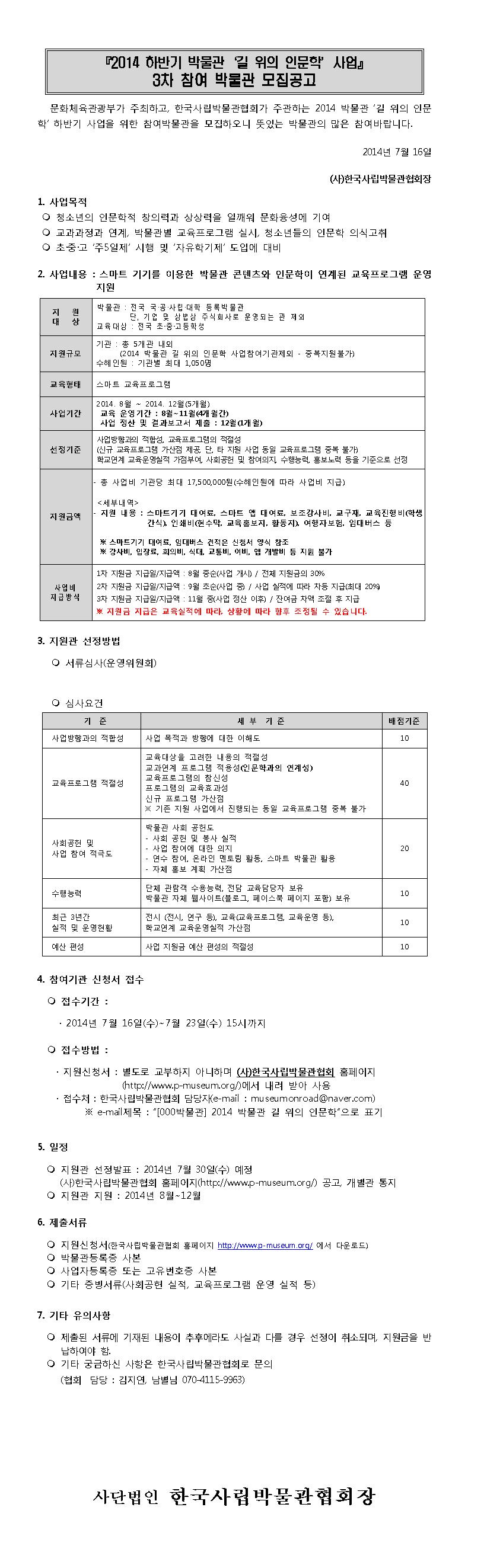 [인문학] 2014 박물관 '길 위의 인문학' 3차 추가모집 공고