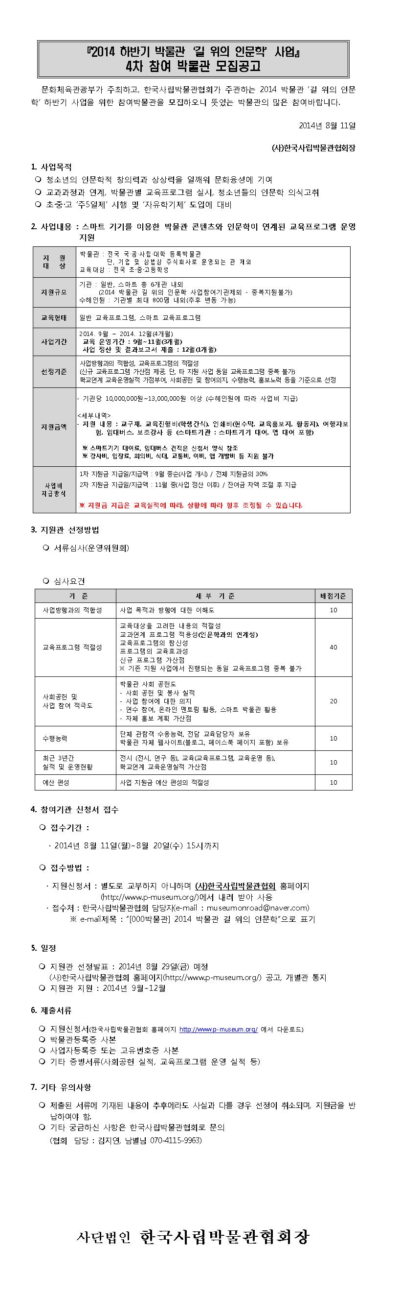 [인문학] 2014 박물관 '길 위의 인문학' 4차 추가모집 공고