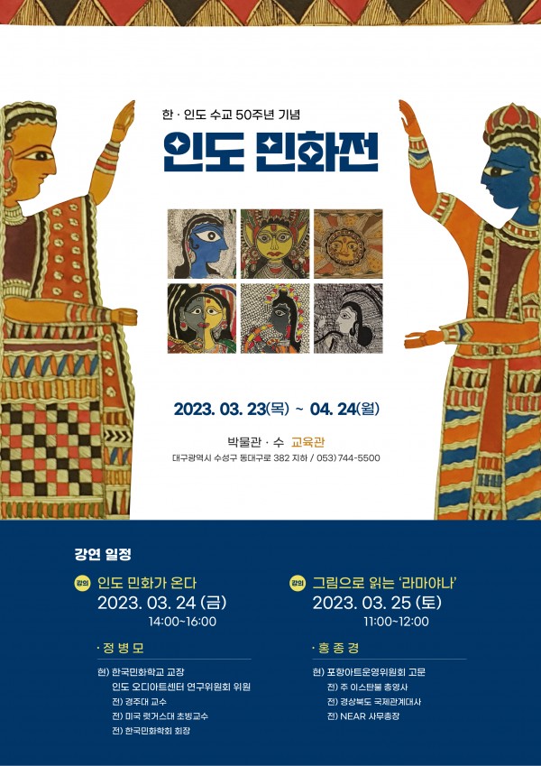 [박물관 수] 인도민화전 개최 페이지 정보 작성자 관리자 작성일23-04-13 09:22 조회15,127회 댓글0건 관련링크 이전글 다음글 목록 본문 박물관 수(관장 이경숙, 대구시 수성구 국제보상로 186길 47)에서 "한국. 인도 수교 50주년 기념 - 인도민화전"을 개최합니다.많은 관심과 참여를 부탁드립니다. 댓글목록 등록된 댓글이 없습니다. 이전글 다음글 목록